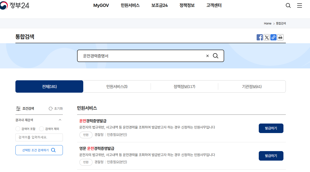 운전면허증 갱신하면 언제 발급받았는지 궁금하시죠? 아니면 사고이력 벌금이력이 궁금하십니까?  모두 정부24에서 해결가능합니다.정부24 정부서비스 | 정부24정부24는 정부의 민원 서비스, 정부혜택(보조금24), 정책정보/기관정보 등을 한 곳에서 한 눈에 찾을 수 있고 각 기관의 주요 서비스를 신청·조회·발급할 수 있는 대한민국 정부 대표 포털입니다www.gov.kr ▼  + 전체경력이나 위반경력을 숨기고 싶으시면 기간을 선택해서 출력가능하십니다. ▼+  이렇게 이력확인 및 출력이 가능합니다.