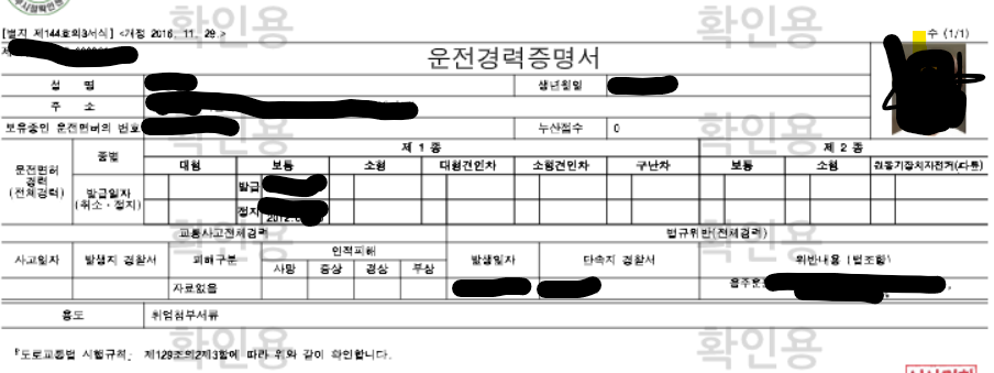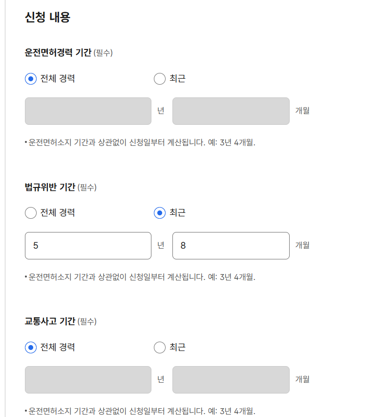 + 전체경력이나 위반경력을 숨기고 싶으시면 기간을 선택해서 출력가능하십니다.